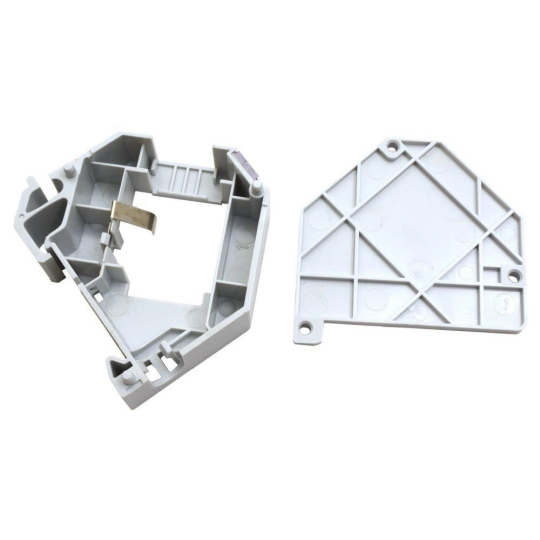 Plastový držák pro 1 keystone na DIN lištu. Integrovaný kovový pásek zajišťuje uzemnění keystone modulu. Štítek pro popis (vyjímá se po sejmutí bočního krytu)..