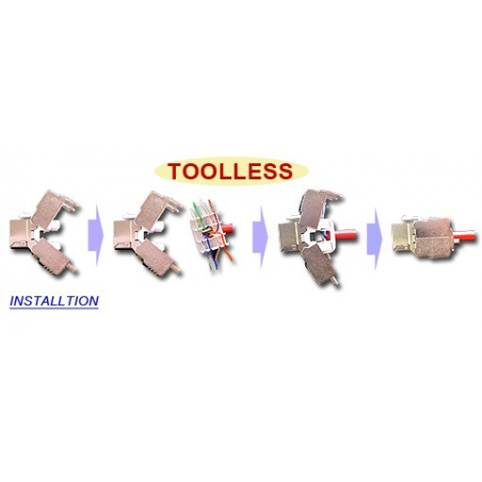 Keystone Cat6A, STP, samozařezávací se zaklapnutím, stříbrný Lze zařezat kabely s vodiči o průměru AWG26-22, průměr s izolací 0,4-0,6 mm..... více