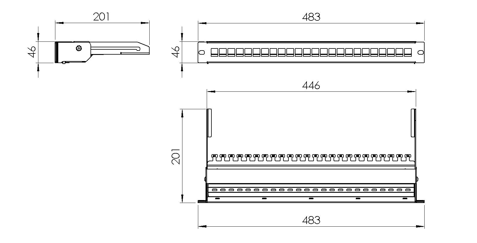 Neosazený 24 portový patch panel pro UTP/FTP, výsuvnýVelikost: 1U