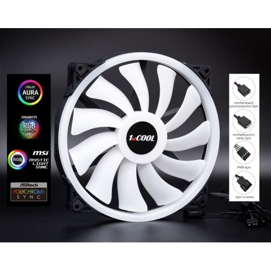 1stCOOL Ventilátor AURA EVO, 200mm, ARGB