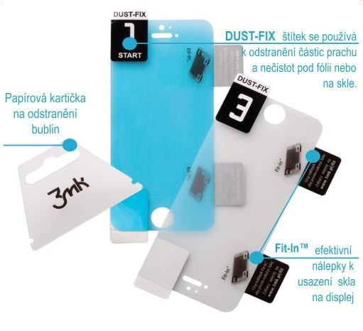 - Sada obsahuje: FlexibleGlass, kartičku na rozetření bublin, polohovací samolepky Fit-In™ a samolepky Dust-Fix™, čistící a suchý hadřík.