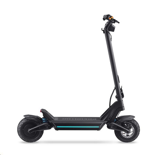 Projíždí jakýmkoli terénem díky terénním pneumatikám o rozměrech 10” x 3”, které jsou navrženy pro přilnavost, rovnováhu a kontrolu. Ať už se jedná o městské ulice nebo drsné stezky, přední vidlice a zadní odpružení tlumí každý náraz a otřes a poskytují jízdu, která je plynulá, ale zároveň výkonná.