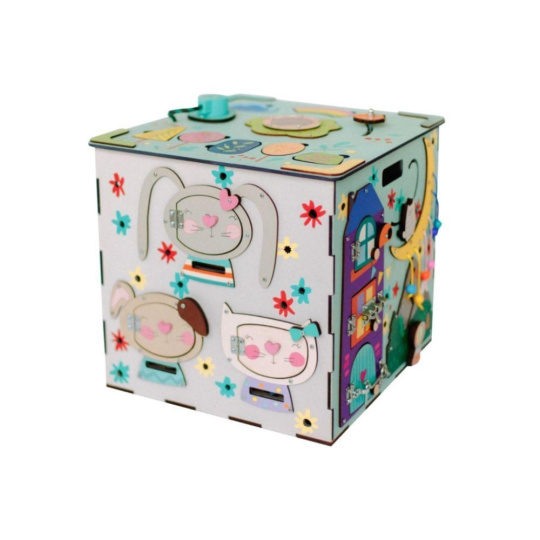 Originální activity board kostka s LED osvětlením XXL je montessori hračkou, která dětem přinese spoustu zábavy, zdokonalí jejich schopnosti a naučí je novým dovednostem. Každá ze stran modrého activity boardu je originální a nabízí nespočet možností ke hře, poznávání a zkoumání. Nechybí ozubená kolečka, různé způsoby zapínání a zavírání, tkanička, bludiště, korálky, vkládací puzzle, různá překvapení i sluníčkový vypínač, který activity board kostku rozzáří..