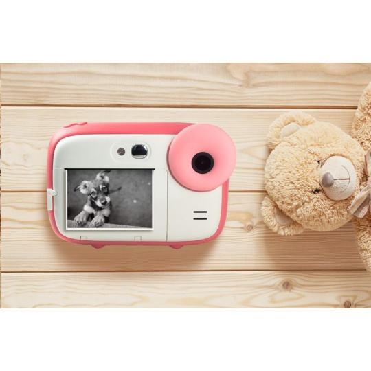 Realikids Instant Cam je jak digitální fotoaparát, který pořizuje fotografie a videa, tak okamžitý fotoaparát, který tiskne černobílé fotografie ve formátu 5,7 × 10 cm. Už žádný inkoust s tiskem na termální papír – stačí jedna role termopapíru! Je to velmi jednoduché a cenově výhodné. Má dobíjecí lithiovou baterii a 2,4" obrazovku, takže si můžete zarámovat a prohlížet fotografie/videa uložená na micro SD kartě (není součástí dodávky).