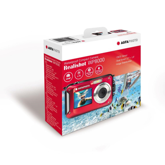 Moře, sníh nebo dokonce déšť? Fotoaparát Realishot WP8000 je vhodný za každého počasí. Můžete ho také využít k fotografování i natáčení videa až do hloubky 3 m. Díky kompaktním rozměrům, lithiové baterie a ochrannému krytu je ideální na cestování.