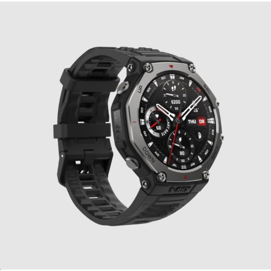 Díky rámečku vojenské kvality z nerezové oceli jsou hodinky Amazfit T-Rex 3 připraveny na jakoukoliv výzvu, pro kterou se rozhodnete, a jsou odolné vůči extrémním teplotám, vlhkosti, nárazům a dalším vlivům.