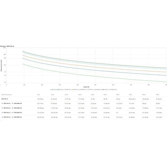 | Doba provozu pro zátěž WMin.–max.: 90-900 W | 21min 9s |