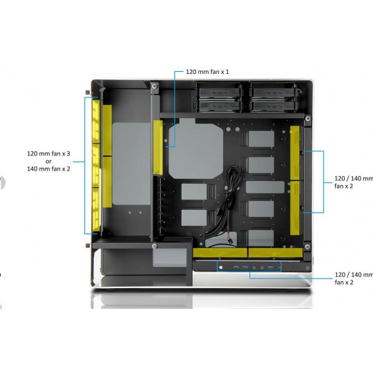 - Podporované formáty základních desek: 12" x 13.4" E-ATX, ATX, Micro-ATX, Mini-ITX
