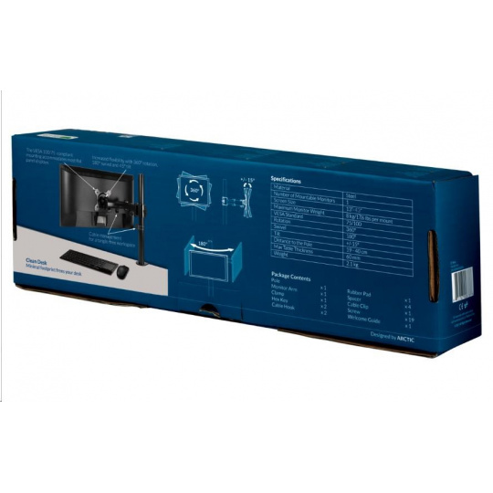 The monitor arm can be mounted on most surfaces with the sturdy and adjustable clamp which fits the edge of your desk in various thicknesses.