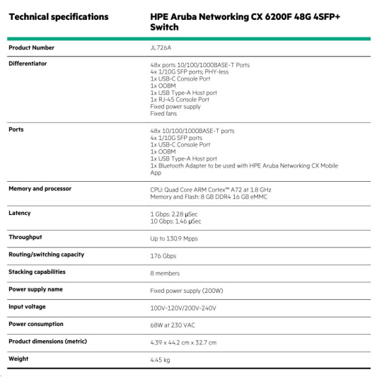 | HPE Aruba Networking CX 6200F 48G 4SFP+ Switch (JL726A) | ||