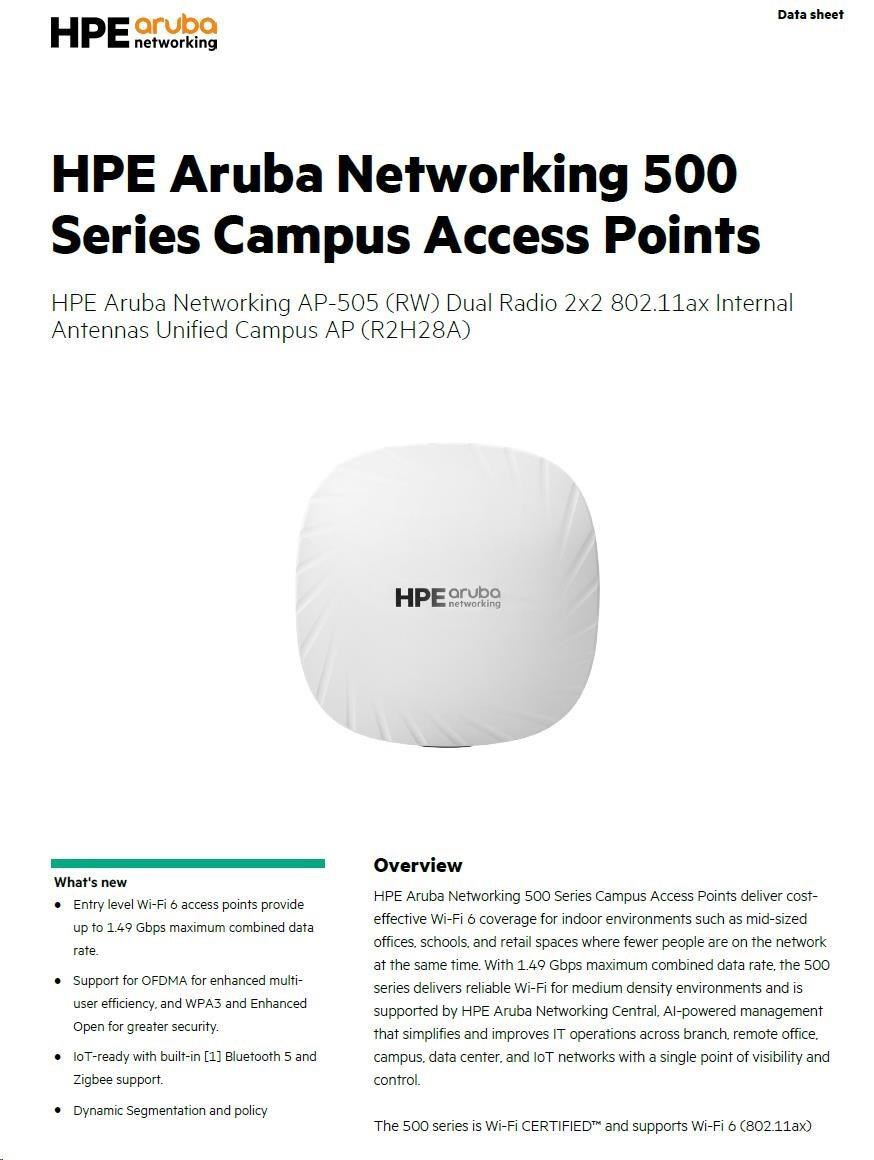 Odkaz na web výrobce: https://www.arubanetworks.com/assets/ds/DS_AP500Series.pdf