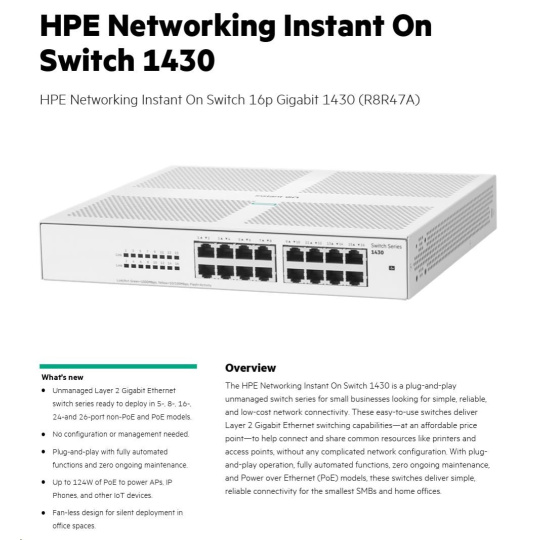 HPE Networking Instant On Switch 16p Gigabit 1430 (R8R47A)