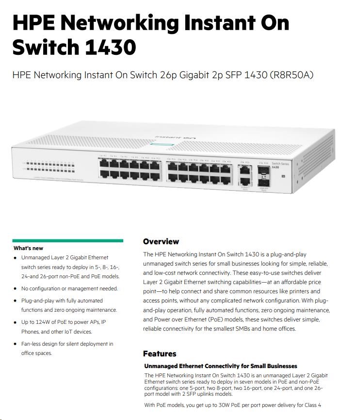 HPE Networking Instant On Switch — 1430 Series (R8R50A)