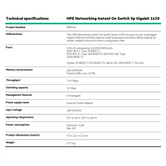 HPE Networking Instant On Switch 5p Gigabit 1430 R8R44A