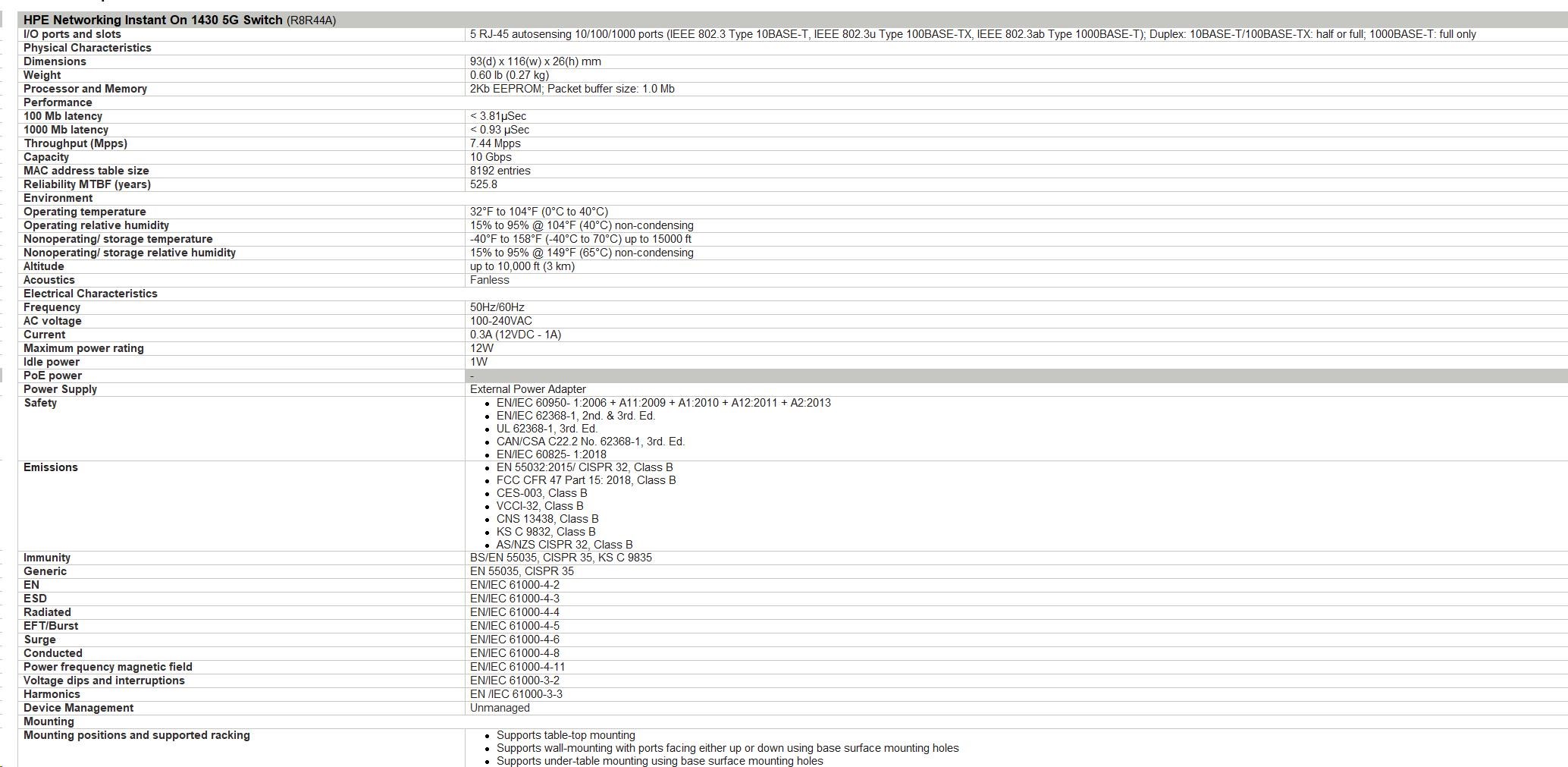 | Aruba Instant On 1430 5G Switch (R8R44A) | |