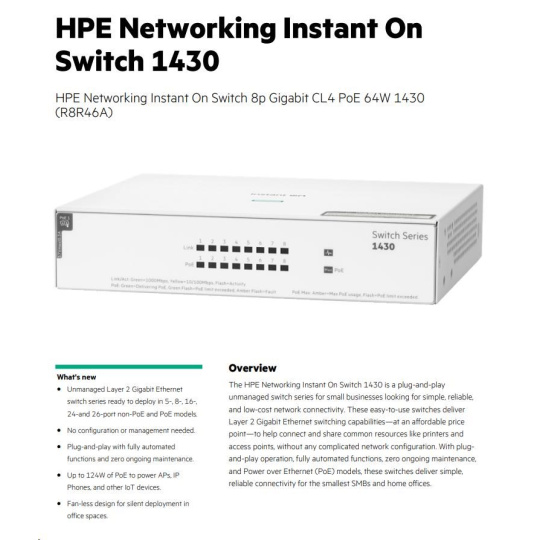 HPE Networking Instant On Switch 8p Gigabit CL4 PoE 64W 1430