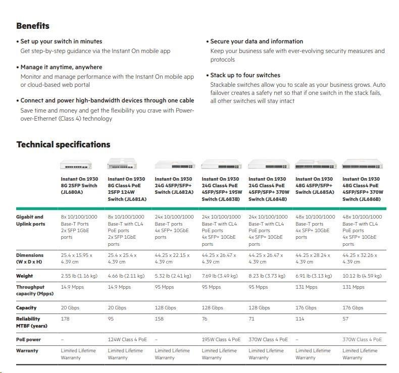 5 x HPE Networking Instant On Switch 24p Gigabit 4p SFP+ 1930 ( 5 x JL682A )