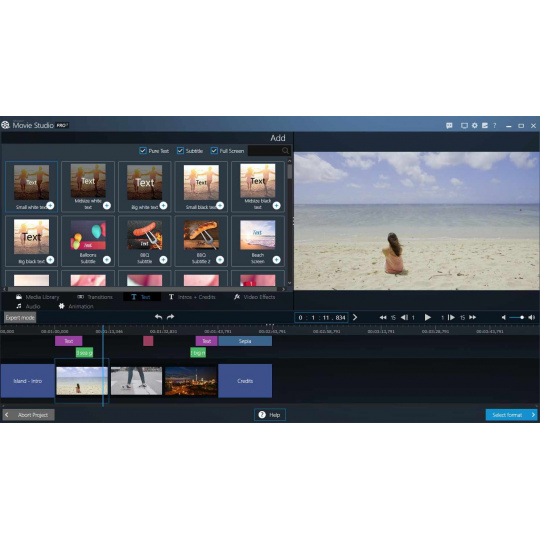 Překryvy, jako jsou úvodní a závěrečné titulky, výrazně přispívají k filmovému zážitku. Aplikace Movie Studio Pro 3 obsahuje obrovský výběr titulků, překryvů a animací, které promění jednoduché klipy v plnohodnotné filmy. Program také obsahuje krásně navržené šablony pro každou příležitost od svateb až po výlety na dovolenou nebo sportovní události, které vám pomohou navodit atmosféru pouhými několika kliknutími!