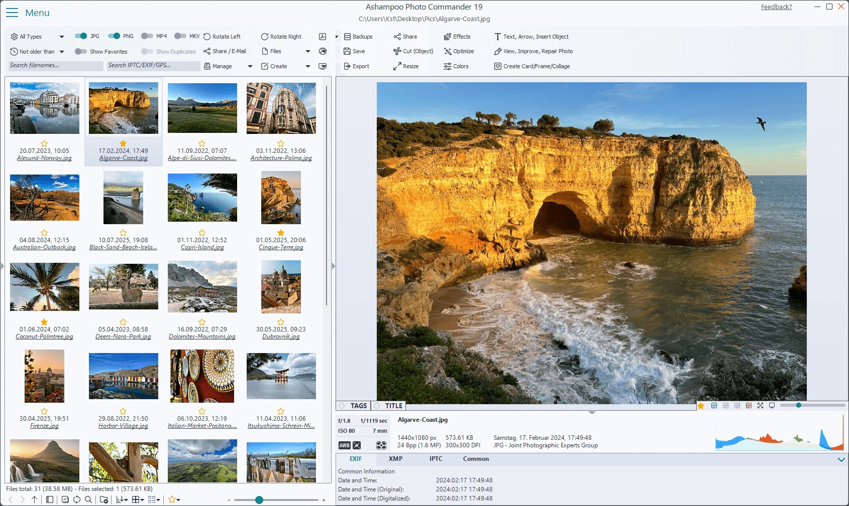 Ashampoo Photo Commander je opravdu šikovný! Prohledává vaši knihovnu a hledá duplikáty a pomáhá vám filtrovat fotografie podle názvu, dat EXIF/IPTC nebo komentářů. Hledání jehly v kupce sena se stalo super snadným. Můžete dokonce ručně přidat chybějící metadata, takže už nikdy neztratíte přehled o svých fotografiích!