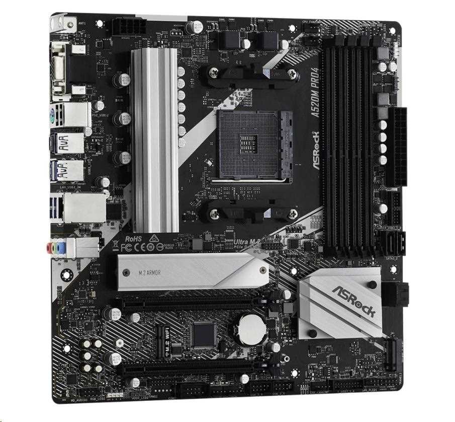 ASRock MB Sc AM4 A520M PRO4, AMD A520, 4xDDR4, HDMI, DP