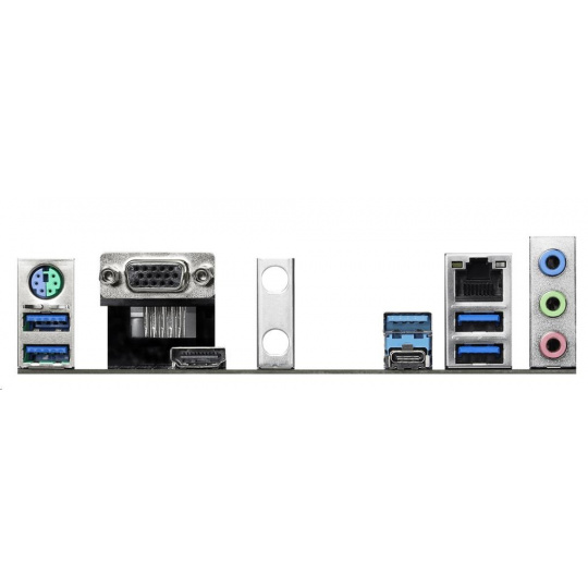 | Rear panel I/O | - Antenna Bracket - 1 x PS/2 Mouse/Keyboard Port - 1 x D-Sub Port - 1 x HDMI Port - 1 x USB 3.2 Gen2 Type-A Port (10 Gb/s) (Supports ESD Protection) - 1 x USB 3.2 Gen2 Type-C Port (10 Gb/s) (Supports ESD Protection) - 4 x USB 3.2 Gen1 Ports (Supports ESD Protection) - 1 x RJ-45 LAN Port with LED (ACT/LINK LED and SPEED LED) - HD Audio Jacks: Line in / Front Speaker / Microphone |