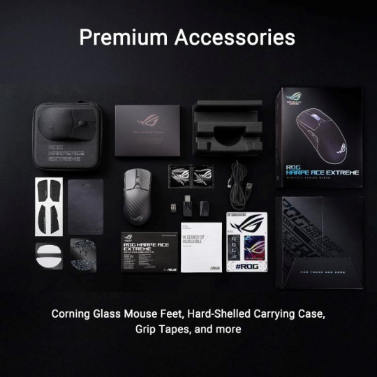 Otevřete nové možnosti s ROG Harpe Ace Extreme – bezdrátová 47gramová karbonová myš a mistrovská kombinace výkonu nové generace, precizního inženýrství a designu schváleného pro esporty. To, co ovládáte, není jen doplněk, ale umělecké dílo.