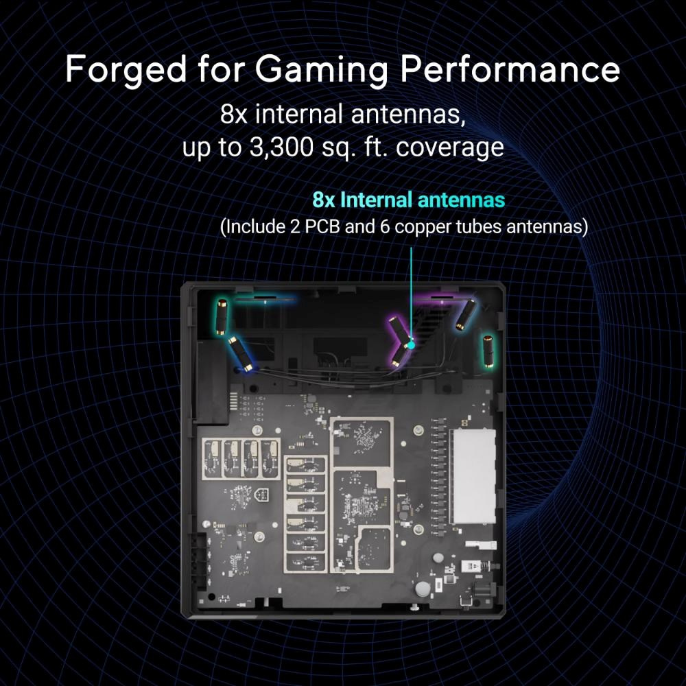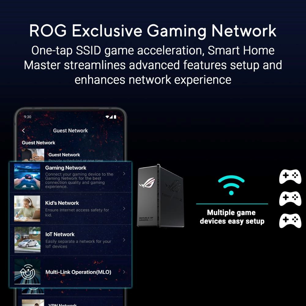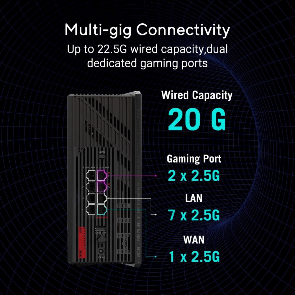ROG Strix GS-BE18000 je dokonalý herní router, který je určen pro ty, kteří vyžadují dokonalost. Bleskurychlé rychlosti až 18 000 Mb/s poháněné špičkovou třípásmovou WiFi 7 a 4x4 MIMO, plus kombinovaná kapacita kabelového připojení 20G, zajišťují bezproblémové hraní s nízkou latencí na všech platformách. Exkluzivní herní síť ROG přináší také průlomovou akceleraci her pomocí jednoho klepnutí na SSID, zatímco trojúrovňové zabezpečení sítě zabezpečuje a zjednodušuje váš připojený svět.