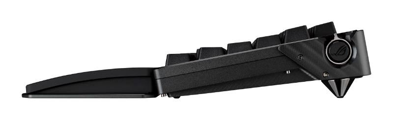 ROG Azoth Extreme je přizpůsobitelná 75% herní klávesnice s prémiovým šasi z hliníkové slitiny a kovovým rámem. Vyznačuje se rychlostí hlášení 8000 Hz s ROG Polling Rate Booster a více než 1600 hodin výdrže baterie v bezdrátovém režimu ROG SpeedNova 2,4 GHz. Vylepšený OLED dotykový displej a třícestný knoflík umožňují monitorování systému a rychlé nastavení. Polohovací deska z uhlíkových vláken zajišťuje ostrý zvuk při psaní, zatímco tři tlumicí vrstvy absorbují vibrace. Nastavitelný držák těsnění s pádlovým spínačem nabízí dvě možnosti psaní.