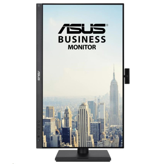 Monitor ASUS BE279QFK pro videokonference - 27“, Full HD, IPS, 100 Hz, bezrámečkový, webová kamera Full HD, pole mikrofonů, stereofonní reproduktory, výškově nastavitelný, ergonomický design, HDMI, Eye Care, Low Blue Light, Flicker Free, možnost montáže na zeď, udržitelnost