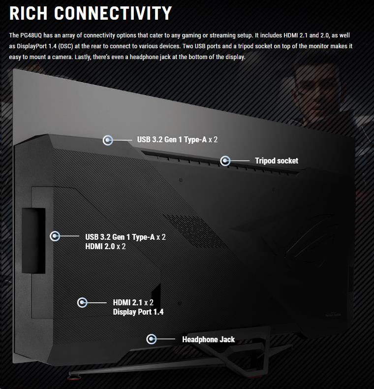 ASUS LCD 47.5" PG48UQ 3840x2160 ROG Swift OLED GAMING 4K, OLED, 450cs, 138Hz, 0.1ms, repro 10W, HDMI DP USB vesa 30x30