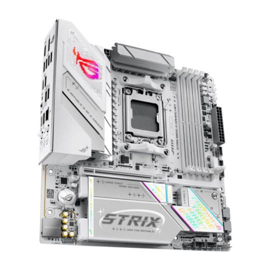 Unleash next-gen performance with the ROG Strix B850-G Gaming WiFi. Built with a sleek white PCB and featuring support for AMD Ryzen™ 9000 Series processors and cutting-edge DDR5 memory, this motherboard is equipped for top-tier gaming. PCIe® 5.0, USB 20Gbps Type-C® and WiFi 7 ensure unmatched speed and performance.