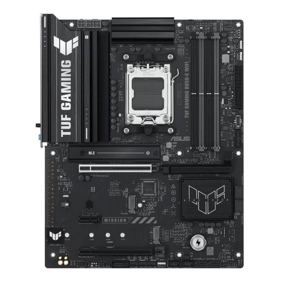 ASUS TUF GAMING B850-E WIFI takes all the essential elements of the latest AMD Ryzen™ processors and combines them with game-ready features and proven durability. Engineered with military-grade components, an upgraded power solution and a comprehensive cooling system, this motherboard goes beyond expectations with rock-solid and stable performance for marathon gaming. TUF GAMING motherboards also undergo rigorous endurance testing to ensure that they can handle conditions where others may fail. This platform delivers the power and connectivity that advanced AI PC applications demand.