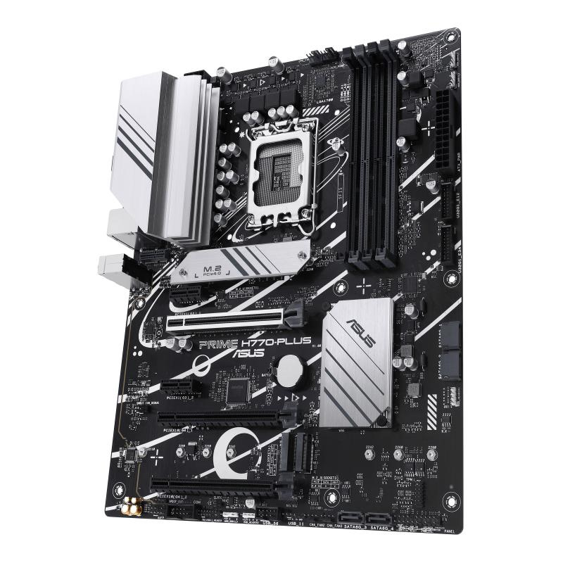 ASUS Prime H770-PLUS, an Intel® H770 LGA 1700 ATX motherboard with PCIe 5.0, three PCIe 4.0 M.2 slots, DDR5, Realtek 2.5Gb Ethernet, DisplayPort, HDMI™, USB 3.2 Gen 2 Type-C®, Thunderbolt™ (USB4®) support, Aura Sync