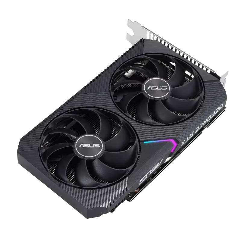 ASUS Dual GeForce RTX 3050 V2 OC Edition 8GB GDDR6 se dvěma výkonnými ventilátory Axial-tech a 2slotovým designem pro širokou kompatibilitu.