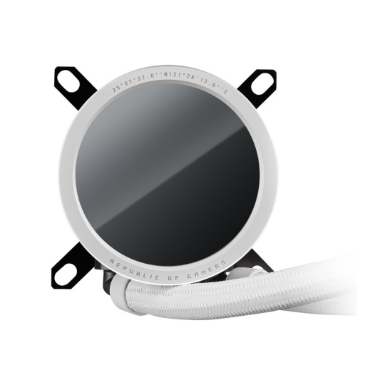 ROG Ryuo III 240 white edition all-in-one liquid CPU cooler with Asetek 8th gen pump solution, Anime Matrix™ LED Display and ROG ARGB cooling fans