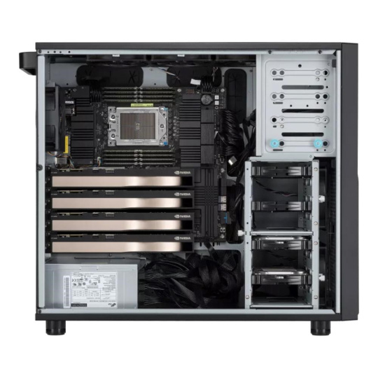 - Podporuje až čtyři grafické karty NVIDIA Quadro RTX pro výkonné 2D/3D vykreslování a pracovní zátěž umělé inteligence.
