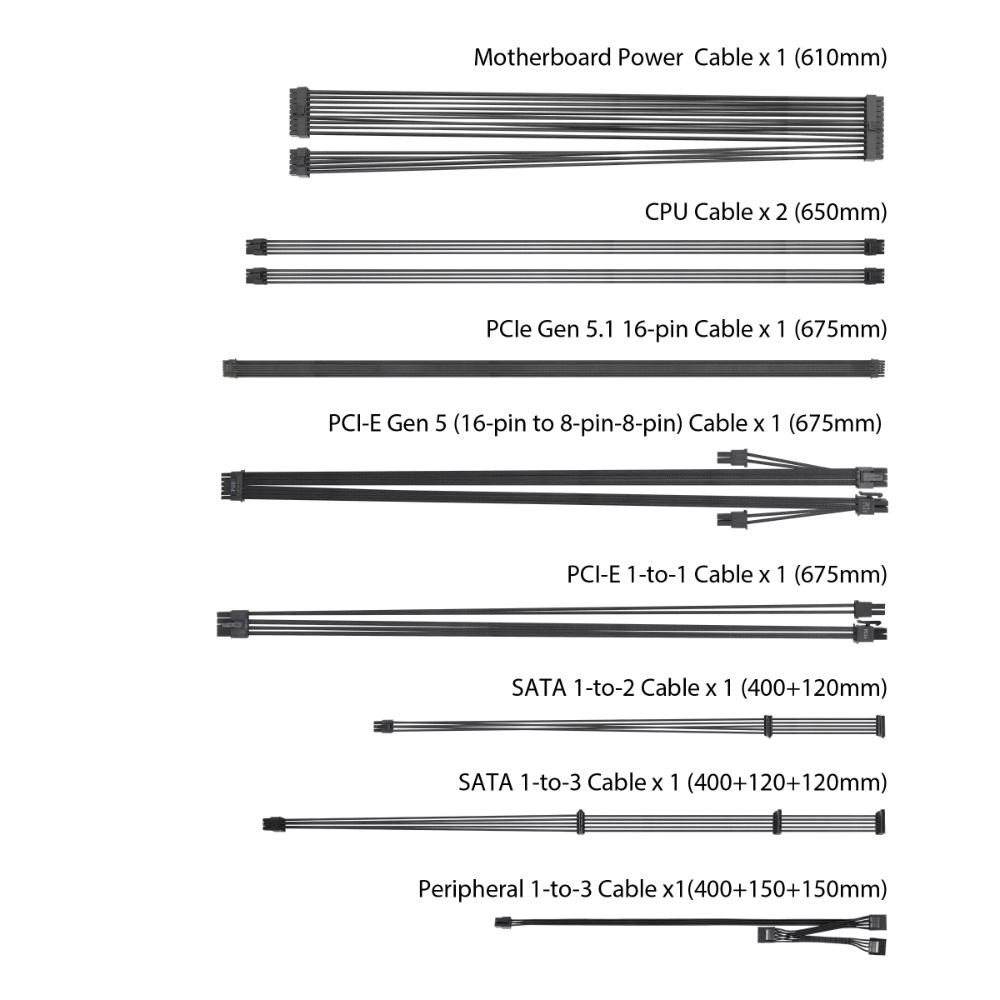 | PCIe 12+4pin Konektor | 1x / 1x (675mm) |