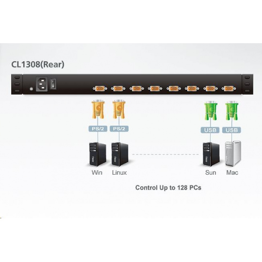 - možnost připojit počítače po USB i PS/2 (řeší se kabely)