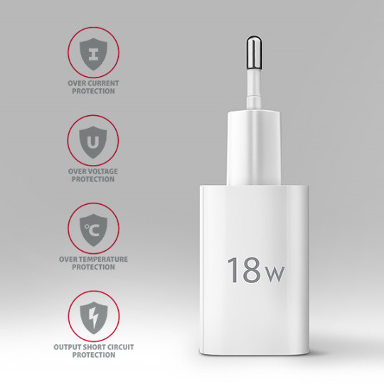Nabíječka je vybavena výstupem Quick Charge 3.0 USB typu A, což umožňuje rychlé nabíjení smartphonů a tabletů výkonem až 18W. Adaptér je také kompatibilní s dalšími standardy rychlého nabíjení telefonů, jako jsou Apple iPhone, iPad, Samsung, Huawei, Honor, Xiaomi, Motorola a dalších.