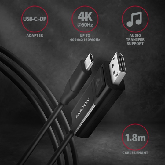 AXAGON RVC-DPC, USB-C -> DisplayPort redukce / kabel 1.8m, 4K/60Hz
