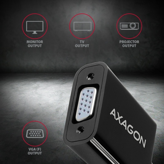 HDMI -> VGA aktivní adaptér AXAGON RVH-VGN pro připojení staršího VGA monitoru/TV/projektoru k počítači nebo jinému zařízení s výstupem HDMI. Redukci lze použít i se set-top boxy nebo herními konzolemi Xbox a PlayStation.
