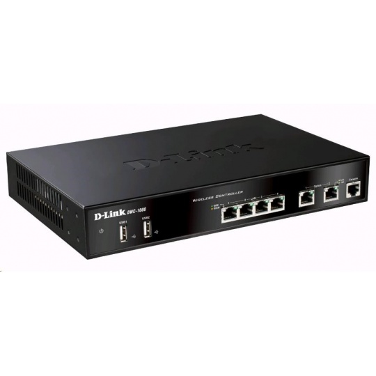 D-Link Wireless Controller - Manages 12 APs per controller - Manages up to 4 controller in one peer group - Supports DWL-8710AP, DWL-8610AP, DWL-8600AP, DWL-6700AP, DWL-6610APE, DWL-6610AP, DWL-6600AP, DWL-3610AP, DWL-3600AP, DWL-2600AP Unified Access Points - Controller Clustering for single-IP management - Wired and Wireless Captive Portal for robust client authentication - Adaptable Wireless enables Tunnel (L3 Tunneling) and Non-Tunnel (VLAN Forwarding) Modes - Seamless L2/L3 fast roaming from AP to AP - AP-AP Tunnel enables client traffic to be forwarded across subnets at the edge - Supports WEP, Dynamic WEP, WPA/WP2 Personal/Enterprise security - Wireless Intrusion Detection System (WIDS) and Wireless Intrusion Prevention System (WIPS) - Rogue AP Detection, Classification and Mitigation - Auto Power Adjustment and Auto Channel Selection for managed AP - Firmware is NOT backward compatible with H/W Bx/Axide available in the download section for DWC-1000 for more information..