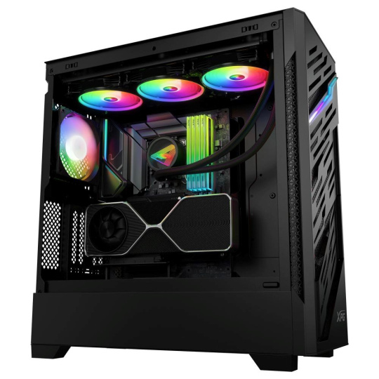 Provedení skříně:Desktop; Barva skříně:Černá; Počet pozic 3.5" (HDD):2; Počet pozic 2.5" (SSD):2; Bočnice:Prosklená; Podsvícení:ARGB; Vybavení PC skříně:Přední Audio panel, Přední USB panel, Průhledná bočnice.... více