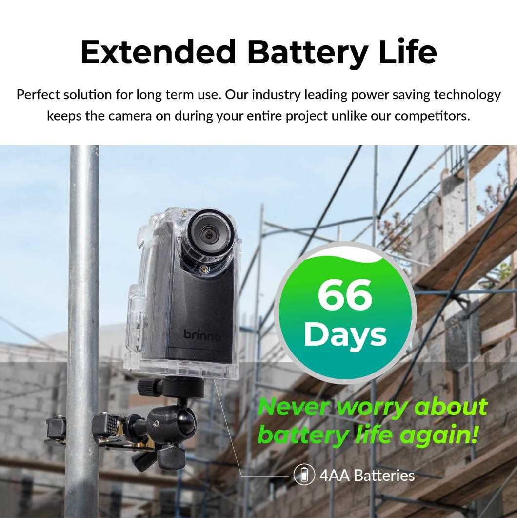 Revoluční technologie úspory energie společnosti Brinno je ideální pro dlouhodobé projekty a udrží vaši kameru nabitou déle než jakákoli jiná akční kamera na trhu.