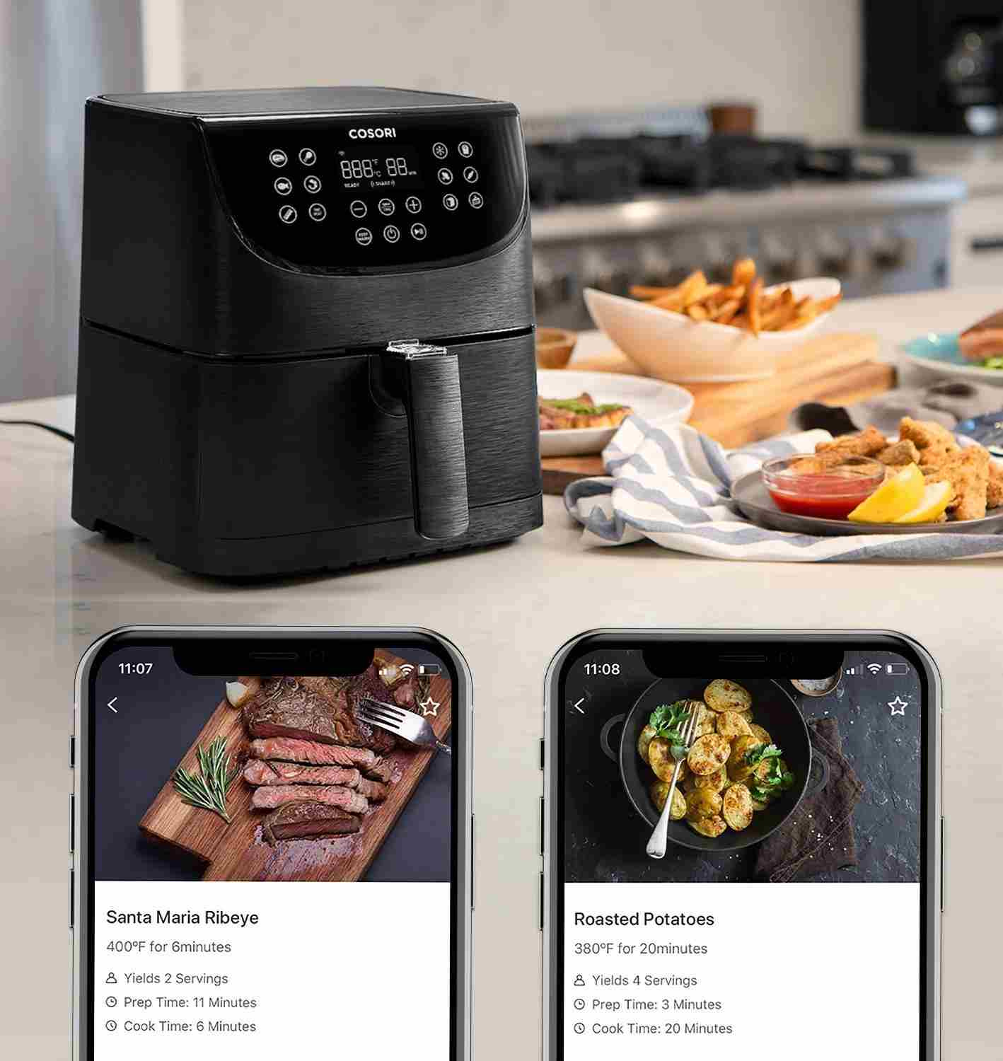 S horkovzdušnou fritézou COSORI CS158-AF PREMIUM SMART si můžete užít vaše oblíbená smažená jídla bez výčitek, protože na rozdíl od běžného smažení nebo fritování je v této horkovzdušné fritéze možné připravovat jídla za použití velice malého množství oleje nebo vůbec žádného. Kombinace cirkulujícího horkého vzduchu, dokonalé teploty vaření a chytrých programů zajistí, že hranolky budou vždy krásně křupavé a kuřecí stehna šťavnatá. Programy si rychle a pohodlně můžete nastavit také přes Smartphone nebo Amazon Alexa a Google Assistant. Až budete mít hotovo, čištění bude stejně snadné díky nepřilnavému koši, který lze mýt v myčce. Díky veliké nádobě s objemem 5,5l navíc dokážete rychle navařit i pro větší rodinu nebo skupinu hostů.