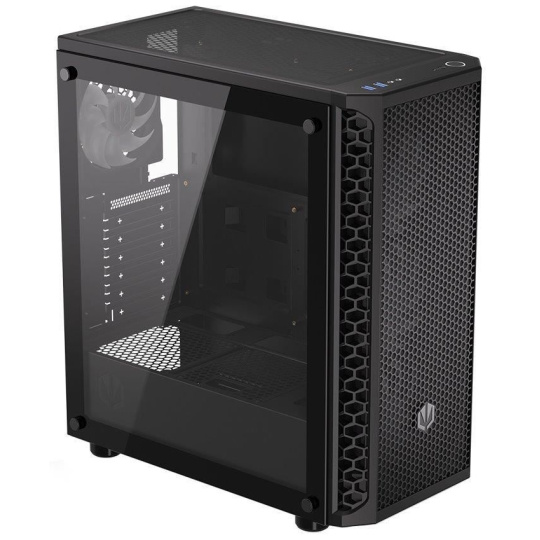 Skříň formátu Middle Tower s průhlednou bočnicí z tvrzeného skla nabízí dvě 2,5" pozice pro SSD disky a dvě 3,5" pozice pro pevné disky. Na horní části se nachází dva USB 3.0 porty, sluchátkový výstup a audio vstup pro mikrofon. Vybavena je čtyřmi 120 mm ventilátory s ARGB podsvícením, které spolu s perforovaným čelním panelem zajišťují dostatečné proudění vzduchu. Důmyslné řešení umožňuje pohodlné umístění až 360 mm dlouhého výměníku vodního chlazení na přední straně. Ve skříni je dostatek prostoru pro chladič CPU do výšky až 161 mm a grafickou kartu o délce až 350 mm. Dodávána je bez zdroje. Součástí je také sada prachových filtrů.