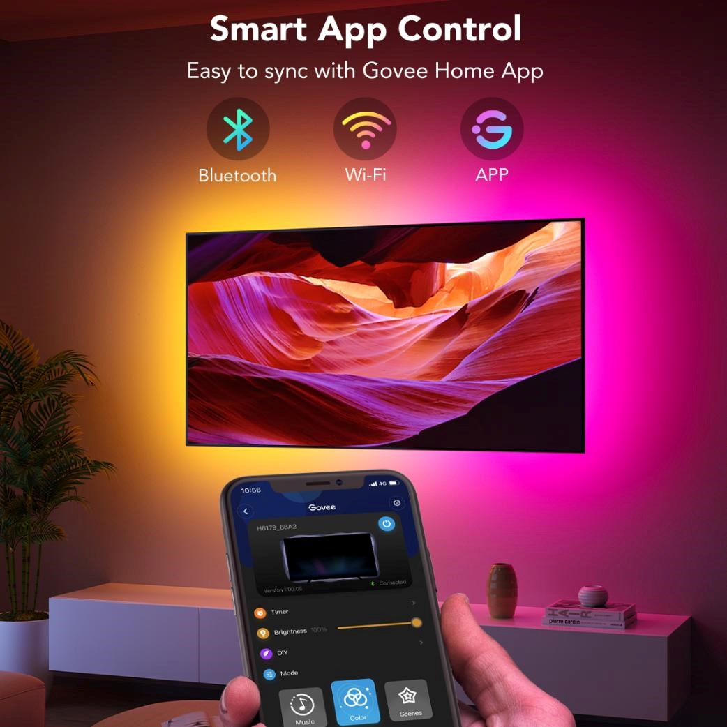 LED pásek snadno ovládnete prostřednictvím aplikace Govee Home, kde si nastavíte barvy, režimy i intenzitu světla. Díky integraci s hlasovými asistenty Alexa a Google Assistant můžete osvětlení řídit pohodlně i hlasem. Podpora chytré domácnosti vám zajistí rychlou personalizaci a maximální komfort při každodenním používání.