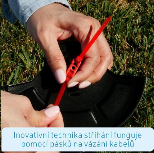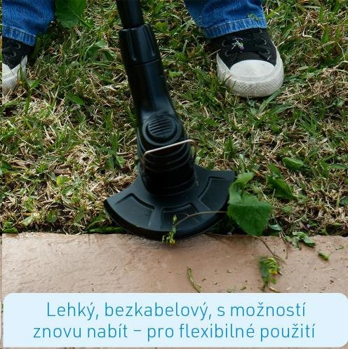 Inovativní technika úpravy trávníku: funguje s běžnými páskami na vázání kabelů Ultra lehký, bez kabelu, dobíjetelný: pro flexibilní použití v zahradě Váží méně než 900 gramů - můžete jej zvednout i jednou rukou Podrobný popis produktu Hammersmith Bionic Trimmer upraví váš trávník zpět do formy. Inovativní zastřihávač funguje pomocí běžných pásek na vázání kabelů a postará se o plynulou práci kterou nebudete muset přerušit, abyste pracně novou strunu do strunové kosačky. Zároveň ušetříte spoustu peněz! Ultra lehký pro flexibilní použití v zahradě Bionic Trimmer je ultra lehký, dobíjetelný, používáte jej bez kabelu, tedy je jeho použití v zahradě absolutně flexibilní. Na jeho obsluhu stačí jedna ruka, je lehký jako pírko, váží méně než 900 gramů. Ergonomická rukojeť a vysouvatelná teleskopická tyč Ergonomická rukojeť se příjemně drží a usnadní vám nakládání s přístrojem. Vysouvací teleskopická tyč vám umožní přístroj přizpůsobit vaší výšce. Díky zabudovanému vodítku se z přístroje stane praktický zastřihovač rohů trávníku. Odteď můžete ve vaší zahradě zastřihovat rohy trávníku bez toho, abyste museli vytahovat další přístroje. Bezpečný, bezkabelový s dobíjecí vysoce výkonnou baterií Hammersmith Bionic Trimmer je vybaven výkonnou lithium - iontovou baterií, takže jej nemusíte únavně doplňovat benzínem nebo olejem. Stačí jej zasunout do zástrčky a dobít. Díky zabudovanému vodítku se z přístroje stane praktický zastřihovač rohů trávníku. Odteď můžete ve vaší zahradě zastřihovat rohy trávníku bez toho, abyste museli vytahovat další přístroje. Ochranný kryt umožňuje rychlé a bezpečné použití. Váš trávník upravíte rychle a potichu. Přístroj můžete používat vertikálně i horizontálně. Detaily produktu: Rozměry: 985 mm x 173 mm x 180 mm Pásky na vázání kabelů: 97,38 mm x 4,81 mm x 1,6 mm Napětí akumulátoru: 7,4 V Kapacita akumulátoru: 2000 mAh, typ: Lithium-iontový Rychlost: 10.000 otáček / min Hluk: 95 dB Nabíjecí adaptér - vstup: 9,5 V, 600 mA Doba úplného nabití: 4 hodiny Doba chodu: max 21 minut Délka kabelu pro nabíjení: 1,8 m Teleskopická rukojeť nastavitelná mezi 70 - 95 cm Váha: 0,9 kg Obsah balení Obsah balení: 1 x Hammersmith Bionic Trimmer přístroj 24 x páska na vázání kabelů.