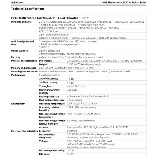 HPE FlexNetwork 5130 24G 4SFP+ 1-slot HI Switch (JH323A)