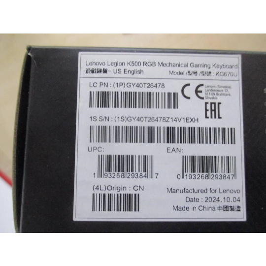 BAZAR - LENOVO Legion K500 RGB Mechanical Gaming Keyboard ( US English ) - Poškozený obal (Komplet)